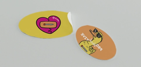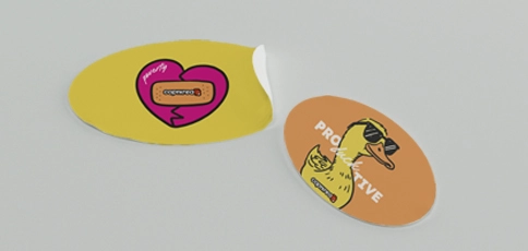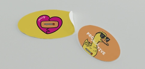 Te nalepke so natisnjene na zelo odporen prosojen vinil, z visoko ločljivimi barvami, ki zagotavljajo intenzivne barve tudi na svetlih ozadjih. Samolepilna film‑osnova je prilagodljiva, trajna in se enostavno prilepi na gladke površine, kot so steklo, plastika, kovina ali satenski papir.