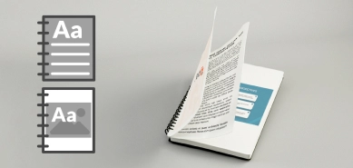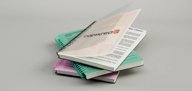 Izbereš lahko, ali želiš dokumente kot posamezne liste, spete, plastificirane ali vezane z barvnimi spiralami.